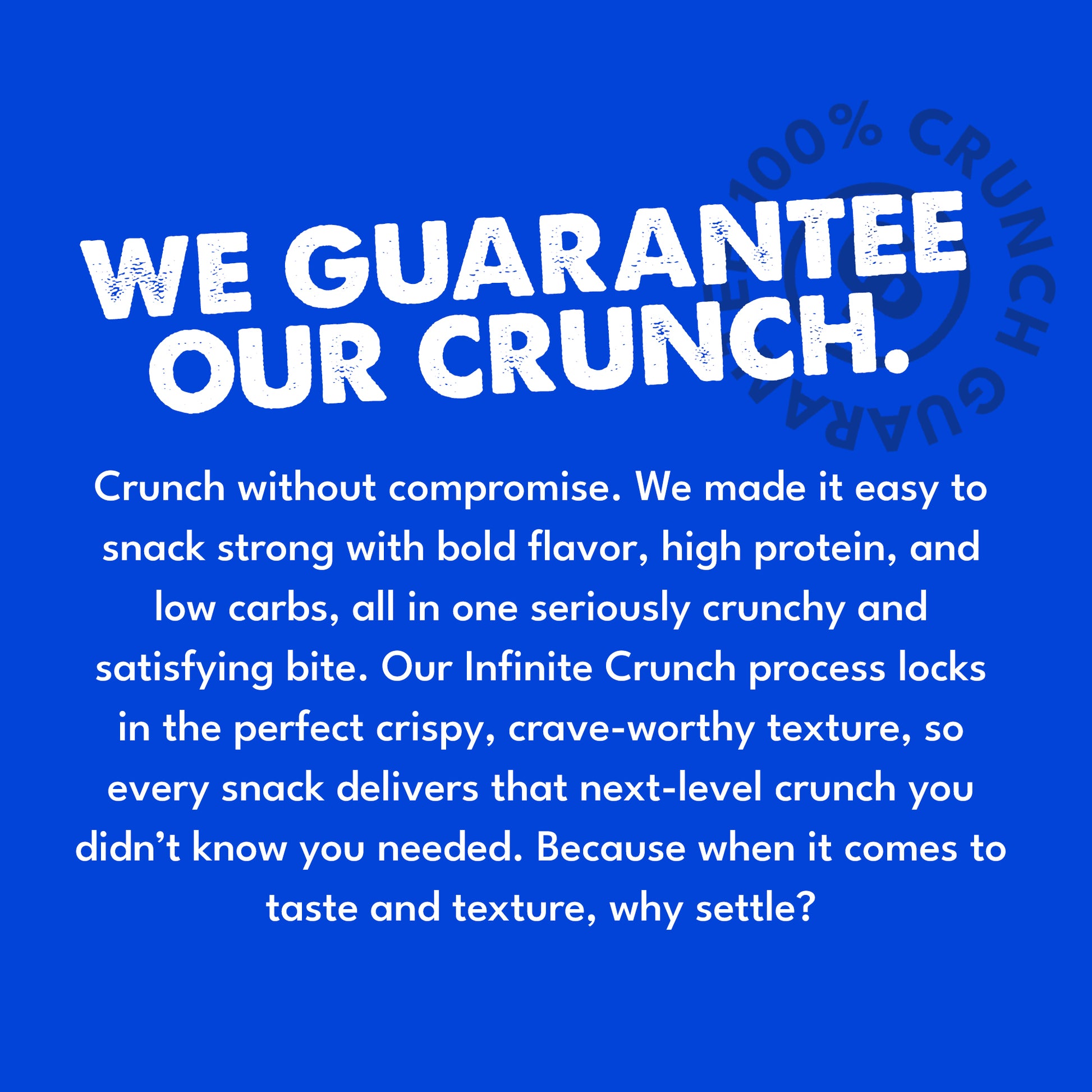 We don’t do cardboard snacks. Serious crunch only! If our Protein Pretzels don’t hit the spot, we want to hear about it. We’ll work with you to make it right because we know once you find your perfect crunch, there’s no going back. No dry, bland bites—just bold flavor, epic texture, and a commitment to snack satisfaction.